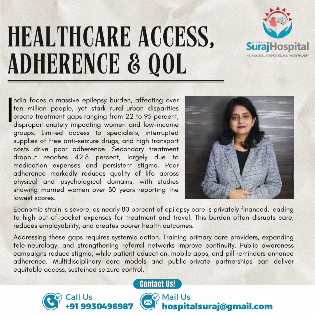 India faces a massive epilepsy burden, affecting over ten million people, yet stark rural-urban disparities create treatment gaps ranging from 22 to 95 percent, disproportionately impacting women and low-income groups. Limited access to specialists, interrupted supplies of free anti-seizure drugs, and high transport costs drive poor adherence. Secondary treatment dropout reaches 42.8 percent, largely due to medication expenses and persistent stigma. Poor adherence markedly reduces quality of life across physical and psychological domains, with studies showing married women over 30 years reporting the lowest scores. Economic strain is severe, as nearly 80 percent of epilepsy care is privately financed, leading to high out-of-pocket expenses for treatment and travel. This burden often disrupts care, reduces employability, and creates poorer health outcomes. Addressing these gaps requires systemic action. Training primary care providers, expanding tele-neurology, and strengthening referral networks improve continuity. Public awareness campaigns reduce stigma, while patient education, mobile apps, and pill reminders enhance adherence. Multidisciplinary care models and public-private partnerships can deliver equitable access and sustained seizure control.